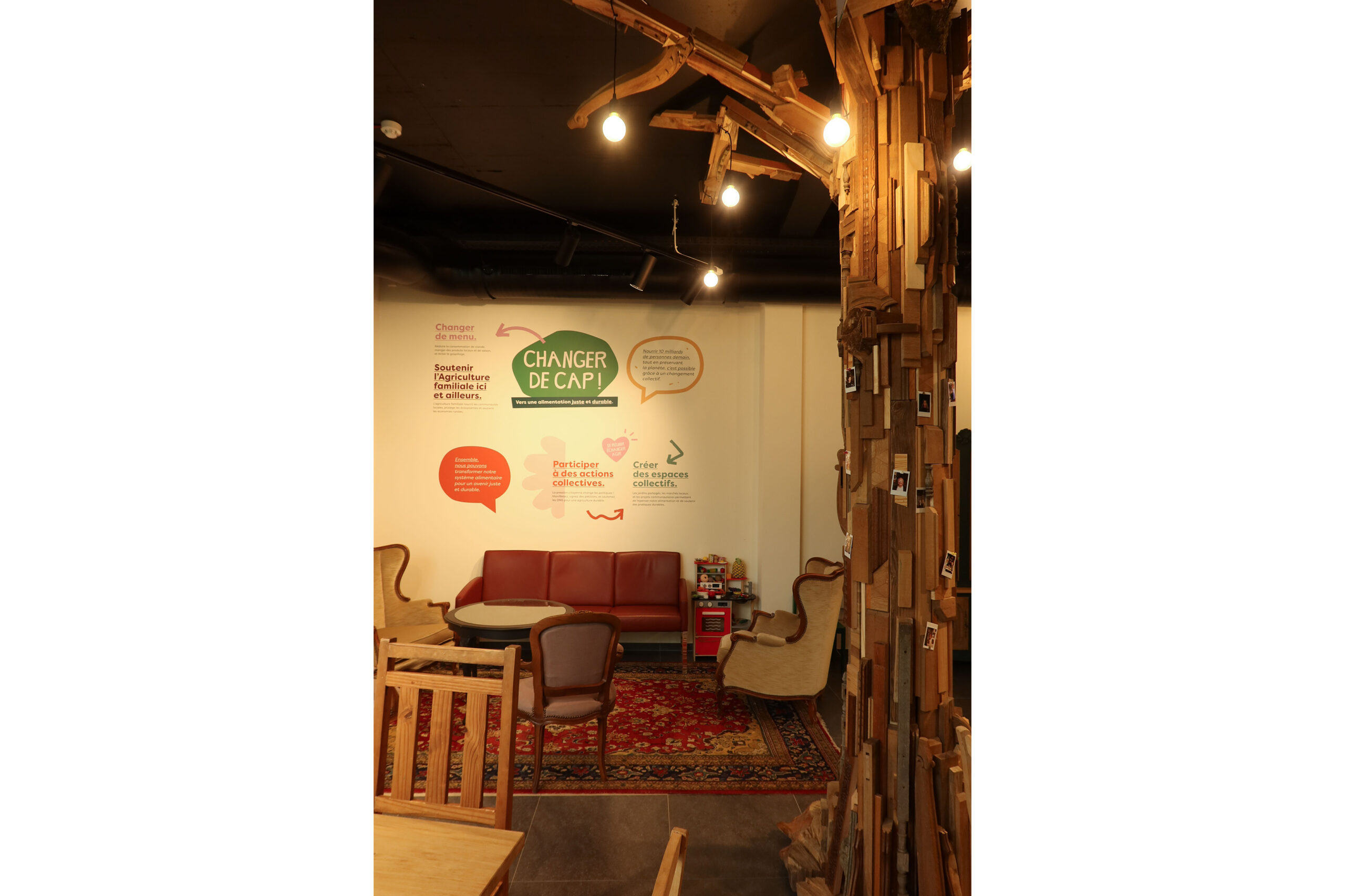 Un bâtiment conçu par les architectes Atelier 70 et une prise en charge de la décoration et des aménagements par Ingrid Breuer de Couleur Tribu. Une mise en scène chaleureuse, prônant un maximum la récupération et l’artisanat.